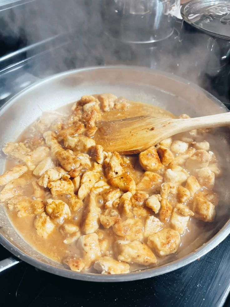 - Add the chicken cubes and cook until golden brown on one side, about 6–7 minutes. Flip and cook the other side until browned and cooked through.